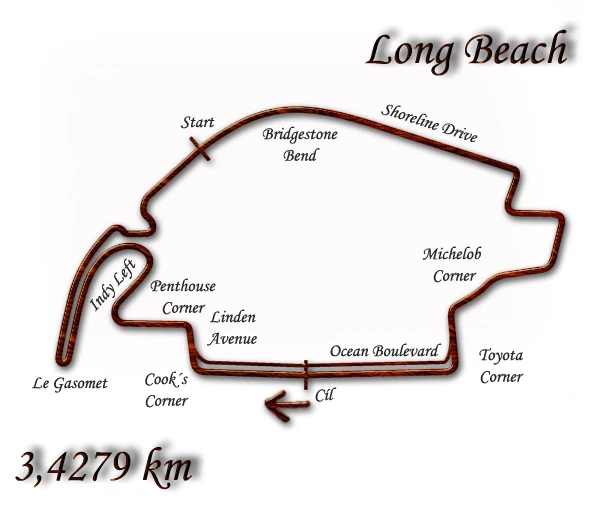 Significant changes had been made to the course since the previous year's race. The Queen's Hairpin at the end of Shoreline Drive had been transformed into a right-angle turn that led into a new section of track with several demanding corners, leading up to Ocean Boulevard. On the other end of the course, the short straight at the bottom of the hill from Linden Avenue had been lengthened and a chicane had been inserted near the beginning of the curving Shoreline Drive "straight," in anticipation of the pits being moved there from Ocean Boulevard. The changes increased the length of the lap only slightly, but added about ten seconds to the previous year's times as the drivers became acclimated to the new layout.