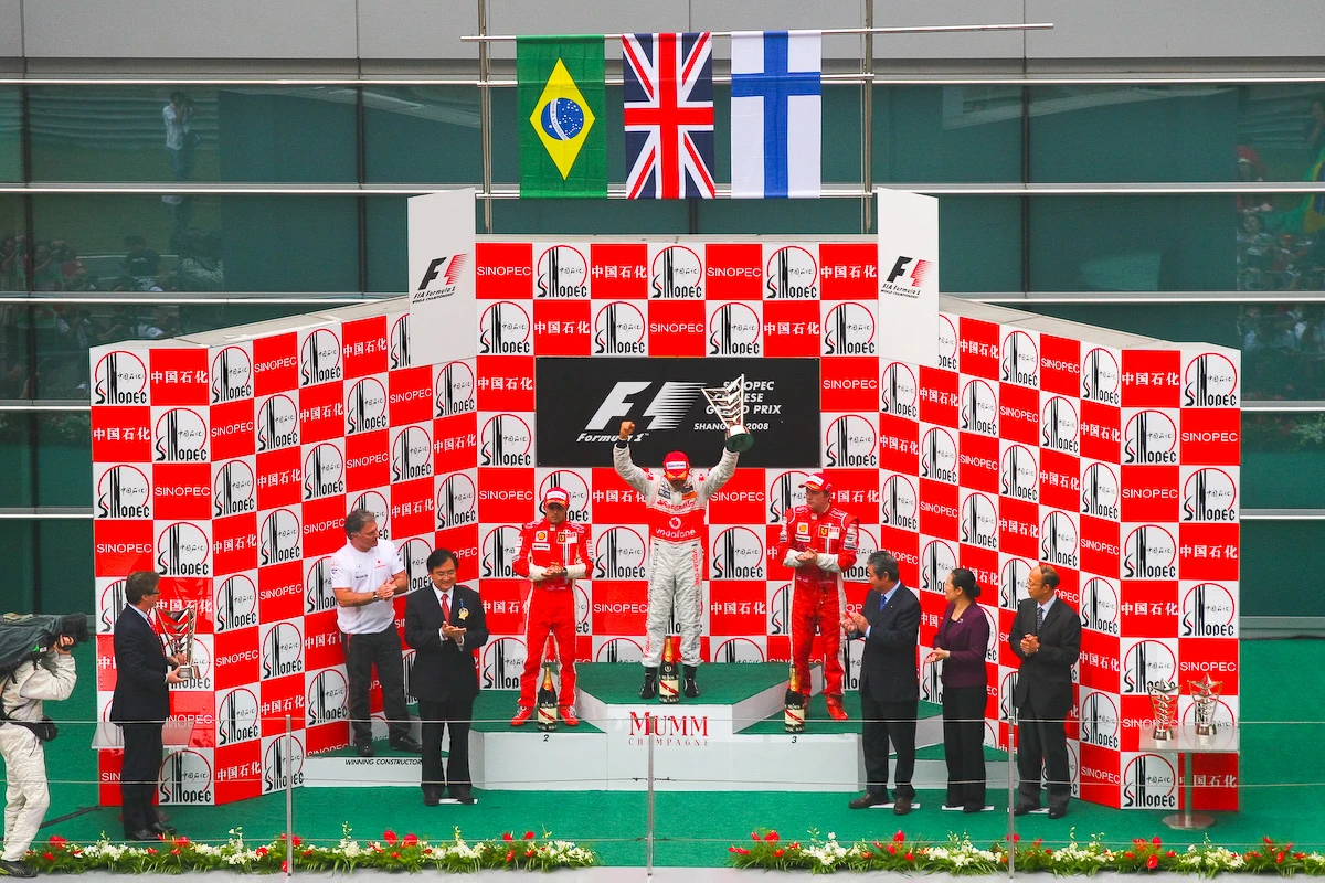 The 2008 Chinese Grand Prix (formally the V Sinopec Chinese Grand Prix) was a Formula One motor race held on October 19, 2008 at the Shanghai International Circuit, Shanghai, China. It was the 17th and penultimate race of the 2008 Formula One season. The race, contested over 56 laps, was won by Lewis Hamilton for the McLaren team after starting from pole position. Ferrari driver Felipe Massa finished second, and Kimi Räikkönen was third in the other Ferrari.