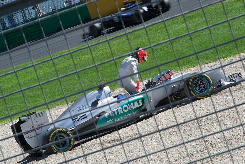 The second period was marked by a second shock elimination, the Ferrari of Fernando Alonso. Five minutes into the period, Alonso crossed the outer edge of the circuit in the braking zone for the first turn and spun into the gravel. As he was unable to return his car to the circuit under its own power, he was prevented from taking any further part in the session. Consequently the session was reg flagged for approximately four minutes while his car was removed; eight minutes and twenty-two seconds remained on the clock for the session. He had been placed third at the time, but gradually fell down the order and was eliminated, ultimately qualifying in twelfth behind Vergne. Felipe Massa in the sole remaining Ferrari could do no better than sixteenth, culminating in Ferrari's first failure to advance at least one car to Q3 (in a dry qualifying session) since the 2009 Abu Dhabi Grand Prix. Conversely, Daniel Ricciardo and Romain Grosjean both reached Q3 for the first time in their respective careers. Despite setting the early pace in Q1, Kamui Kobayashi was unable to duplicate his time and finished thirteenth, ahead of Bruno Senna and Paul di Resta in fifteenth. Kobayashi's team-mate Pérez did not set a time during the period owing to a gearbox fault, and so finished the session in seventeenth.[19] At the conclusion of Q2, Rosberg set the fastest time of the weekend so far to lead an all Mercedes powered top four with Schumacher, Hamilton and Button following.