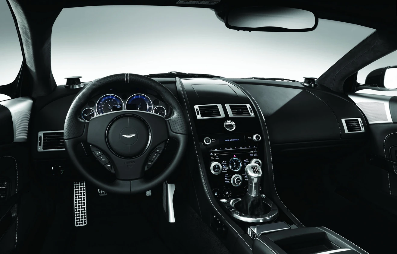 - On December 18, 2009, Aston Martin announced the DBS Carbon Black. The limited edition model features a bespoke Carbon Black metallic finish that takes 50 man-hours of hand painting and quality checks to complete. It is also set apart from the ordinary DBS with gloss black 10 spoke diamond turned alloy wheels, a bright finished grille and front parking sensors. Inside, the interior is swathed in Obsidian Black leather contrasted by hand stitched silver thread while the sport seats are formed from Carbon Fibre and Kevlar (saving 17 kg or 37 lb). Other interior niceties include Piano black facia trim, centre stack and centre console, anodised black tread plates, unique carbon fibre sill plaques and a Bang & Olufsen Beosound DBS audio system. There is no word yet on the pricing but Aston Martin has said that buyers should expect a 5 per cent increase over the price of the basic models. Deliveries will commence from March.[2]
