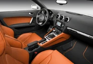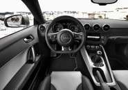 The interior of the third generation Audi TT is notable for its HVAC design, featuring temperature and airflow controls that are embedded in the air-vents themselves, hence improving ergonomics.