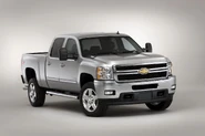 - For 2011, the Silverado receives a mid-cycle facelift and mechanical refresh. The truck now features a completely new fully box-framed chassis that increases bending stiffness by 92% and beaming stiffness by 20%. The front subframe itself is 125% stiffer. There's also a redesigned independent front suspension system that offers up to a 25-percent greater front axle weight rating – up to 6,000 pounds (2,721 kg) front gross axle weight rating (FGAWR), while at the back, there's new, larger asymmetrical leaf-spring design. The big news is under the hood where the Silverado offers two engine options: a 6.0 litre Vortec V8 VVT mated to GM's Hydra-Matic 6L90 6-speed slushbox and a re-engineered 6.6 litre Duramax Diesel V8 that pumps out best in class horsepower and torque at 397 and 765. Allison's 1000 6-speed Automatic has been strengthened to handle the higher torque capability of the improved diesel engine. The Duramax also has B20 capability and a huge catalyst system with urea injector (costing $3 for a refill), similar to Mercedes-Benz's AdBlue system, which nullifies the toxic fumes and particulates produced by diesel. The latter combination delivers more power while returning an 11% increase in fuel efficiency. The new powertrains equate to better towing performance; the 3500 now has a tow rating of 16000 lb while the Heavy Duty tows an astonishing 20000 lb. The new Silverado will go on sale in the States in summer 2010. [1]