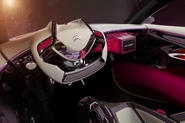 Crafted Deep Red Crystals Literally Project The Tactile Screen Into The Cabin,The Bonnet Of The Car Is Covered in Photovoltaic Cells Supplying Energy For The Onboard Comfort Functions, At The Front, The Observer’s Eye Ts Drawn To A Curved Glass Shape Underlining Lines Of The Grille. The Backlit Translucent Bottom Of The Glass Brings Out The Chevrons To Original Effect.