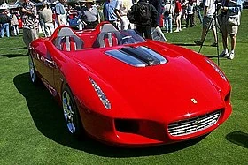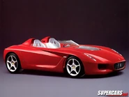This concept car was design by the Japanese designer Kiyoyuki Okuyama of Pininfarina based on the 1996 Ferrari 550 or Ferrari Mythos(1989). With a windshield inspired by runabout bodies , and headrests - arches extended by contours of the bodywork... The name takes up that of the legendary Ferrari Testarossa and Ferrari 250 Testa Rossa (the most expensive car in the world in 2011 following an auction of more than 16 million dollars ). It is powered by the 5.4 L V12 engine for 485 hp from the Ferrari 550 Maranello.