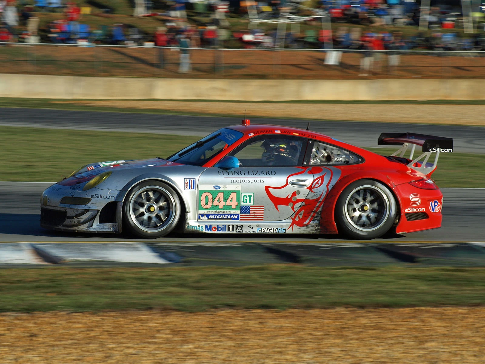 The Flying Lizard Motorsports group is a motorsport team from Sonoma, California, formed by Seth Neiman in early 2003. The team competed in the full American Le Mans Series season, as well as the 24 Hours of Daytona, and the 24 Hours of Le Mans. The team went on to win six driver and team championships in the American Le Mans Series, becoming a Porsche factory team and Porsche Motorsport North America's development partner from 2007 to 2012.[1] The team helped develop the first- and second-generation 997 GT3 RSR as well as bring it to victory several times in its six-year run in the series. The team solely raced Porsche cars from 2004 to 2019, becoming a staple in the Porsche racing community.