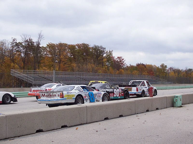Formula Libre-type field on the starting grid before an exhibition race at Road America. The event featured NASCAR Cup and Truck Series vehicles against local late models and other stock cars.