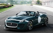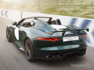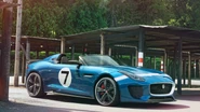The Project 7 is based on the F-Type Convertible, powered by a 5.0 V8 Supercharged engine, developing 575 PS (423 kW). Only up to 250 will be made and is Jaguar's most powerful production car ever. The body is 100% aluminium, reminiscing historical D-Type LeMans winner. Visually, it sports an 'Aero Haunch' behind the driver, similar to 1950s D-Type, a quad exhaust and additional rear spoiler. It has a claimed acceleration of 0-60 mph in 3.8 secs and top speed: 186 miles per hour (299 km/h). Singer and car enthusiastBrian Johnson drove the prototype car on the first programme of the second series of Cars That Rock, and announced at the end of the programme that he had bought one of the 250 production cars.