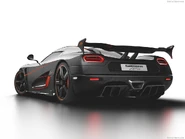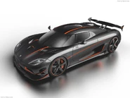 At the 2016 Geneva Motor Show, a final three-car series of the Agera was announced as a final celebration of the Agera range and as the last models to wear the Agera badge. The cars could be fully customised and combined with the Agera RS chassis with the One:1 engine. The first car to be unveiled was called the 'One of One'. It featured a unique orange paint scheme with bare carbon and blue accents. The exterior of the car was complemented with a large adjustable rear wing similar to the One:1 and triple front canards along with a large front splitter.