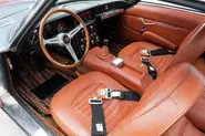 Turn signals were mounted vertically alongside this grille and a pair of pop-up headlights received their place on top of this front bumper, a pair of oval air intakes look like all that remains of the original bodywork at the front where the dual headlights used to be on this ’67 Lamborghini 400 GT 2+2.
