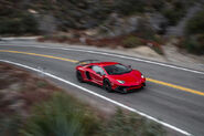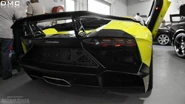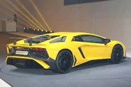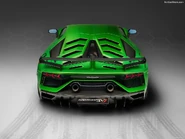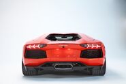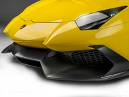 The nose was redesigned with a bigger front splitter and two new air ducts in the front bumper. At the rear it has a new black rear diffuser with fins, and three single exit exhausts tips. It has 130 percent more front downforce than the standard Aventador.