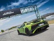 A prototype of the variant had previously made a new production car lap around the Nurbürgring Nordscheleife in July 2018, beating the previous record holder, the Porsche 911 GT2 RS by setting a lap time of 6:44.97 with Lamborghini test driver Marco Mapelli behind the wheel achieved by using the Pirelli Trofeo R tyres available with the car as an option.[42]