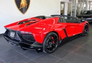 The Lamborghini Aventador LP 700-4 Pirelli Edition was announced in December 2014. Celebrating a 50-year association between Lamborghini and Pirelli, it features a design and colour scheme that echoes the Pirelli tyre, with a thin red stripe running across the roof.[55] The special edition came in both Coupé and Roadster form.
