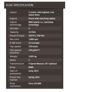 | Body Style | 2-door, 2-seat MR Layout Coupe |
