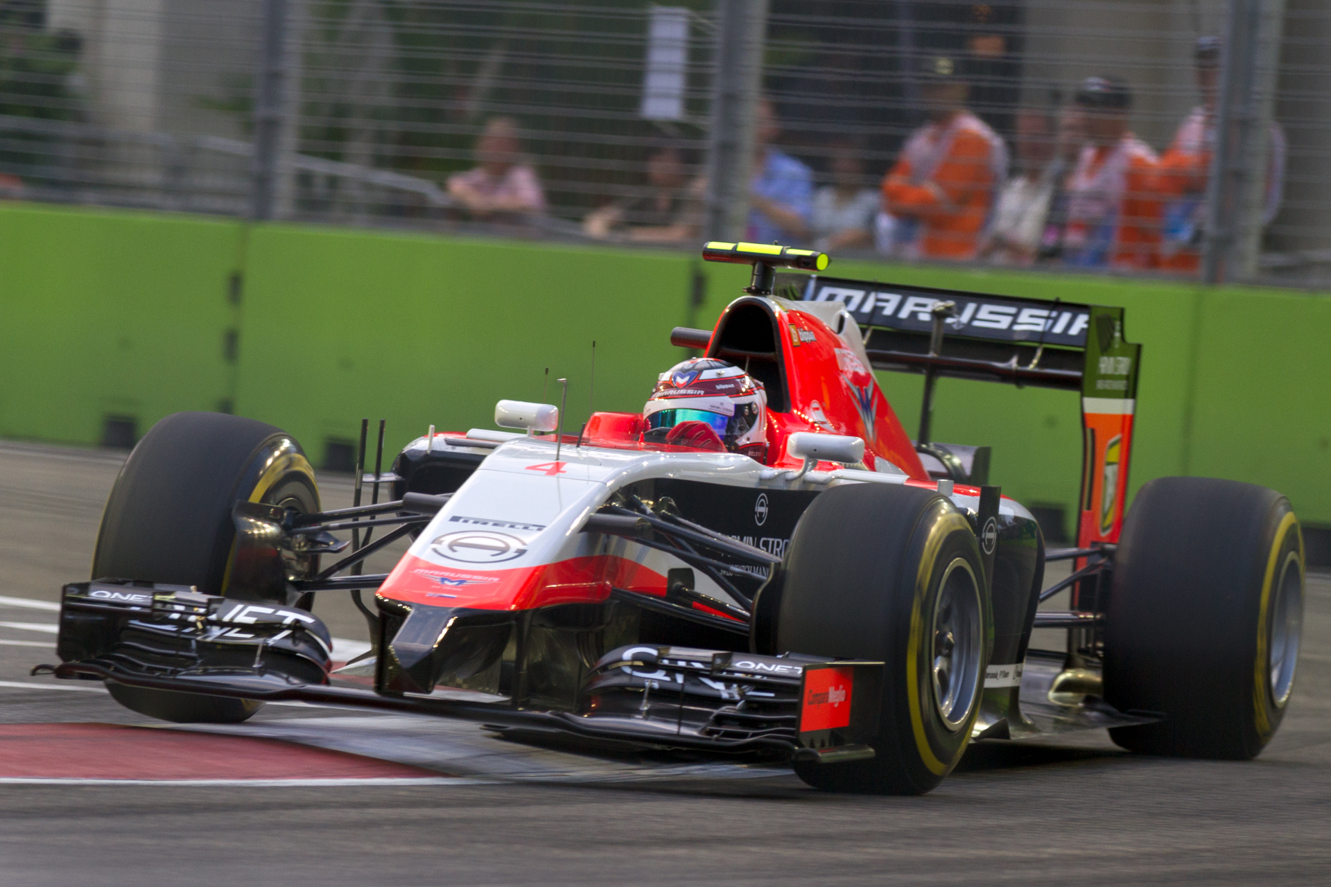 Max Chilton driving the MR03 at the 2014 Singapore Grand Prix