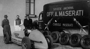 The Maserati brothers, Alfieri Maserati, Bindo Maserati, Carlo Maserati, Ettore Maserati, Ernesto Maserati and Mario Maserati, were all involved with automobiles from the beginning of the 20th century. Alfieri, Bindo and Ernesto built 2-litre Grand Prix cars for Diatto. In 1926, Diatto suspended the production of race cars, leading to the creation of the first Maserati and the founding of the Maserati marque. One of the first Maseratis, driven by Alfieri, won the 1926 Targa Florio. Maserati began making race cars with 4, 6, 8 and 16 cylinders (actually two straight eights mounted parallel to one another). Legend has it, Mario, an artist, is believed to have devised the company's trident emblem after seeing Neptune's statue at Bologna'a Piazza Maggiore. Alfieri Maserati died in 1932 but three other brothers, Bindo, Ernesto and Ettore, kept the firm going, building cars that won races.