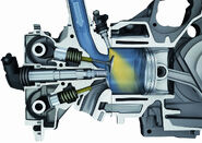 Porsche introduced the 991 GT3 at the Geneva Motor Show in 2013.[54] The 991 GT3 features a new 3.8 litre direct fuel injection (DFI) flat-six engine developing 475 PS (349 kW; 469 hp) at 8,250 rpm, a Porsche Doppelkupplung (PDK) double-clutch gearbox and rear-wheel steering. The engine is based on the unit fitted in the 991 Carrera S, but shares only a few common parts. All other components, particularly the crankshaft and valve train, were specially adapted or developed for the 991 GT3.[55] The dual-clutch gearbox is another feature specially developed for the 991 GT3, based on sequential manual transmissions used in racing cars.[56] The 911 GT3 is claimed to be able to accelerate from 0–97 km/h (60 mph) in 3.2 seconds or less, and the quarter mile in 11.2 seconds at 203 km/h (126 mph).[57][58] The GT3 has a claimed top speed of 315 km/h (196 mph).