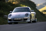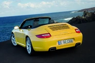 In 2004 the 911 was heavily revised and the 996's replacement, the 997, was unveiled in July. The 997 keeps the basic profile of the 996, bringing the drag coefficient down to 0.28, but draws on the 993 for detailing. In addition, the new front fascia is reminiscant of the older generation "bug eye" headlights. Its interior is also similarly revised, with strong links to the earlier 911 interiors while at the same time looking fresh and modern. The 997 shares about 30% of its parts with the outgoing 996, but is still technically very similar to it. The 0-60 acceleration for the Carrera S was noted to be as fast as 3.9 seconds in a recent Motor Trend comparison, but other sources contradict that. Motor Trend also recorded a 0-60 Accelleration for the 997 Carrera 4 (non-S) as being 4.6 seconds. [1] Type 997 versions of the GT2, Turbo S, and Targa have yet to have a released introduction date, but they will most likely start production during 2006 and 2007 (as of June, 2006). However, the GT2 is rumored to be released in late 2006, have 520-550 hp, and cost around 200,000 USD.