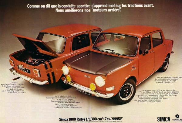 - The Spanish parody group Los Inhumanos released a popular party song titled Qué difícil es hacer el amor en un Simca 1000 ("How difficult it is to make love in a Simca 1000").
