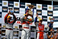 Jamie Whincup (second from left), the most successful driver in recent years, celebrates winning the 2011 series.