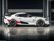 Toyota later unveiled a production model in October 2019, with an engine rated at 320 kW (429 hp; 435 PS). It has a seven-speed automatic, as opposed to the eight-speed unit on standard road going models, and has an Akrapovič exhaust system which enables the increase in power. Inside, an FIA-standard racing seat is present featuring a six-point harness, along with a carbon fibre instrument cluster. Motorsport ABS, a data logger and a fire extinguisher are standard, while an illuminated car number is optional. The GT4 is equipped with six-piston front and four-piston rear brake calipers. Pirelli P Zero racing tires and OZ wheels are fitted, supported by KW dampers. The roll cage and rear wing are also carried over from the concept. Sales began in Europe in March 2020, followed by North America in August 2020 and Japan/Southeast Asia in October 2020.