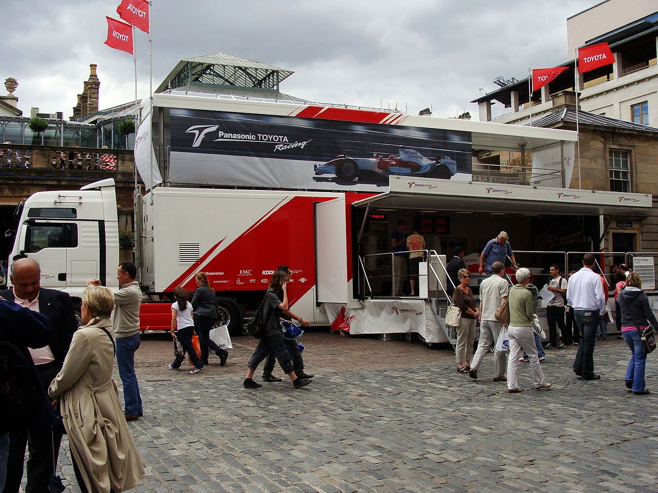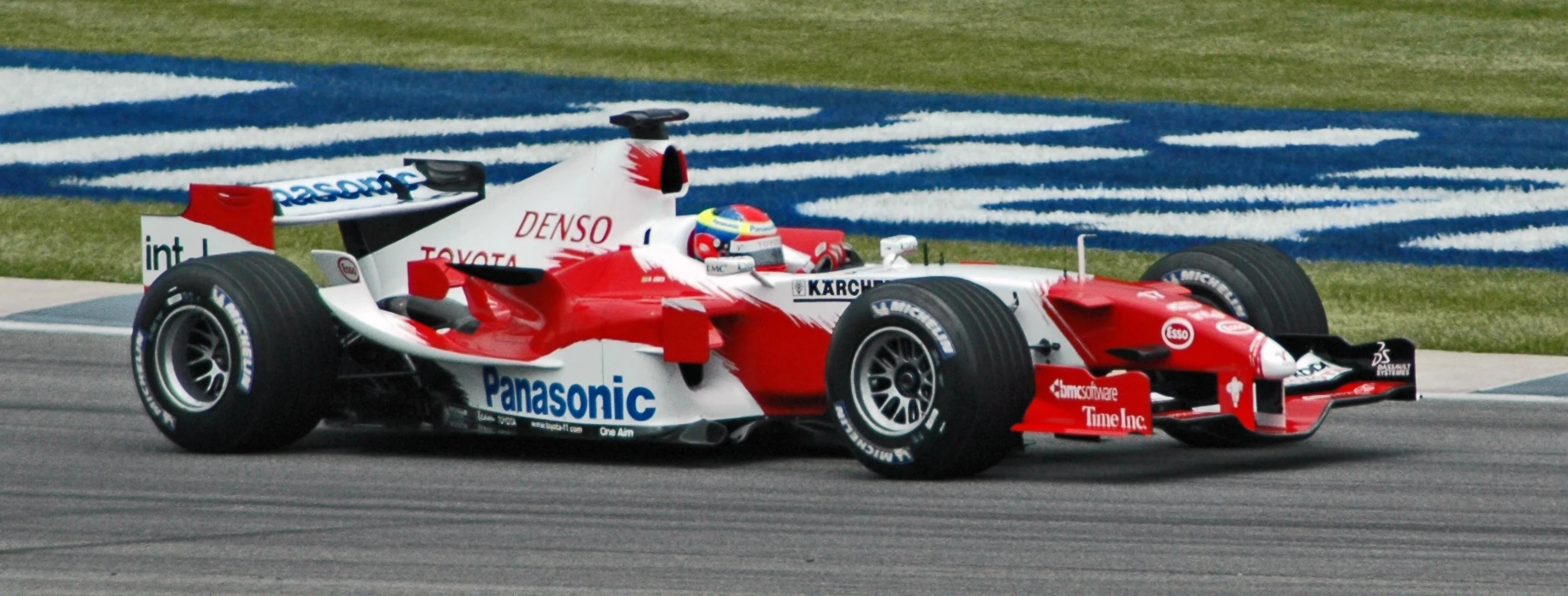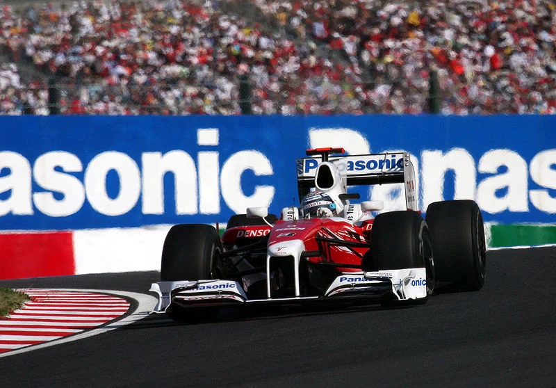 Panasonic Toyota Racing was a Formula One team owned by Japanese car manufacturer Toyota and based in Cologne, Germany. Toyota announced their plans to participate in F1 in 1999, and after extensive testing with their initial car, dubbed the TF101, the team made their debut in 2002.[1] The new team grew from Toyota's long-standing Toyota Motorsport GmbH organisation, which had previously competed in the World Rally Championship and the 24 Hours of Le Mans. Despite a point in their first-ever race,[2] Panasonic Toyota Racing never won a Grand Prix, their best finish being 2nd place, which they achieved five times – in 2005, 2008 and 2009.[3][4][5]