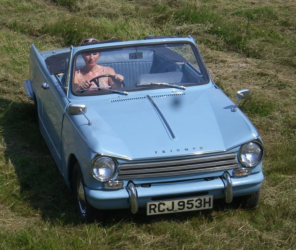 The Triumph Herald is a 2 door related to the Triumph Spitfire. Italian stylist Michelotti was the designer. There were well over 300,000 sales for the Herald one was made into an amphibious car by Top Gear's James May.
