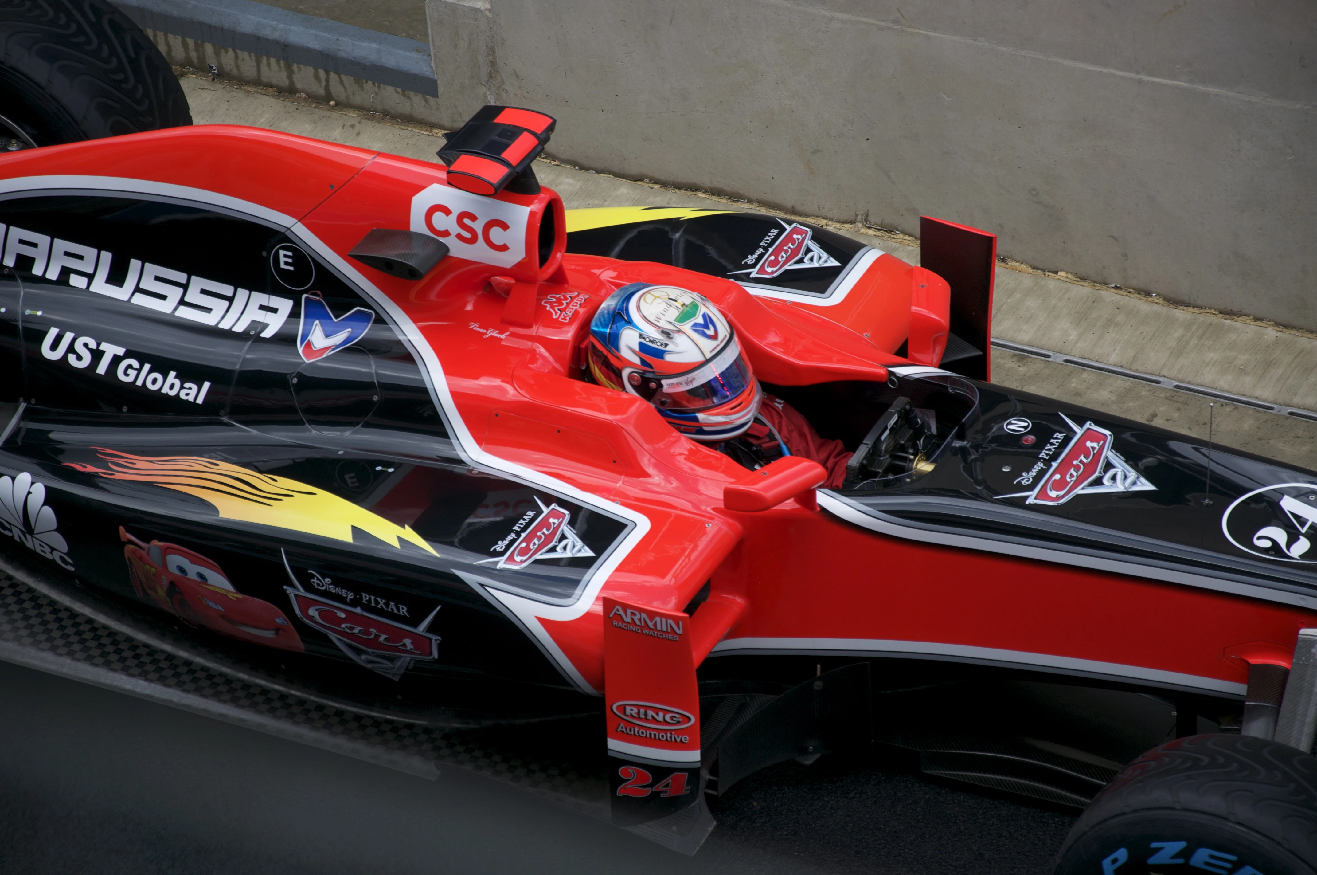 The livery of the MVR-02 included an advertisement for the film Cars 2 at the British Grand Prix - shown here on d'Ambrosio's car.