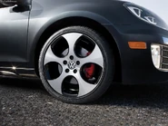 18" BBS RC Wheels with 225/40-ZR18 High-Performance Summer Tires; greatly improved sport suspension — 1" lower overall ride height; Votex body kit with front valance, side skirts, rear hatch wing and rear valance with 3" chromed exhaust tip; 315 mm (12.3") diameter vented front and 256 mm (10") rear vented brakes with red powder coated calipers; all-new six-speed MQ350 transmission; Recaro front seats in special "Le Mans" red and black cloth with custom GTI embroidery; brushed aluminum interior trim accents; red stitching on steering wheel, shift boot, handbrake knob and seats; special golf ball shift knob; aluminum pedals with rubber inserts; stainless steel exhaust with mild sound tuning; red trimmed floor mats; special exterior retro GTI badging; Monsoon sound system (U.S. only); and more...